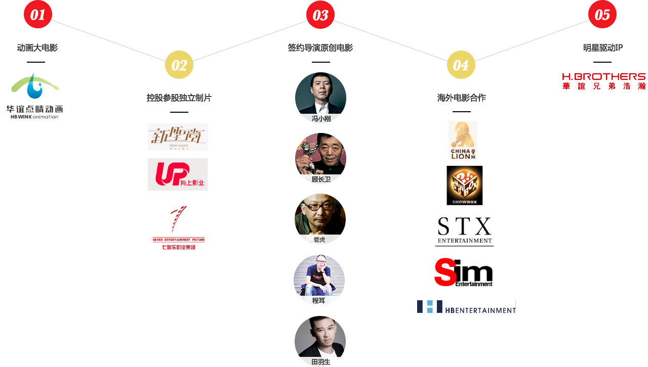 浩瀚娱乐、九游会·(j9)官方网站-真人游戏第一品牌聚星、东阳美拉和九游会·(j9)官方网站-真人游戏第一品牌点睛动画等;以及产量、品质都非常稳定的签约导演团队,如冯小刚、管虎、程耳和田羽生等等。